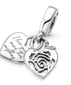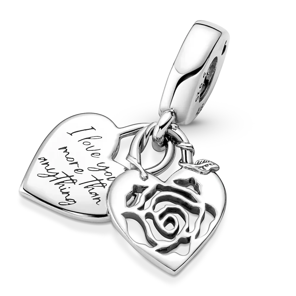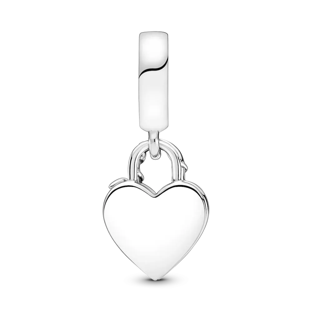 Keep your heart on your sleeve always with this Rose Heart Padlock Dangle Charm. Hand-finished in sterling silver and engraved with the words