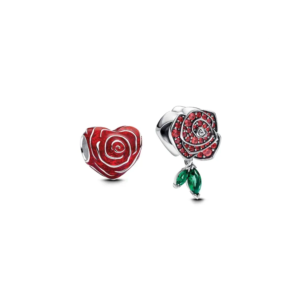 Inspired by the timeless beauty of red roses, the Roses Are Red Charm Duo celebrates love in all its forms. The Rose Heart Charm is crafted in sterling silver with transparent red enamel and a layered petal effect, symbolising love for yourself or the one who makes every day feel like a special day. The Sparkling Rose in Bloom Charm, with its red man-made crystals and green stones, captures the essence of a blooming rose, a perfect symbol of deep affection. Together, these charms are a poetic reminder of love’s enduring beauty.