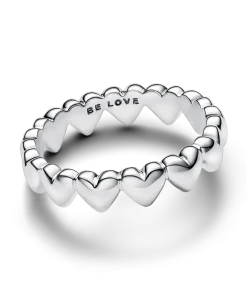 Give a gift from the heart with this sterling silver ring. Expertly crafted with a row of hearts making up the band, this romantic design looks equally beautiful worn on its own or layered with contrasting Pandora rings. Give it as a gift for a meaningful way to express your love, or treat yourself to a piece you’ll love wearing over and over.