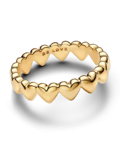 Give a gift from the heart with this 14k gold-plated ring. Expertly crafted with a row of hearts making up the band, this romantic design looks equally beautiful worn on its own or layered with contrasting Pandora rings. Give it as a gift for a meaningful way to express your love, or treat yourself to a piece you’ll love wearing over and over.