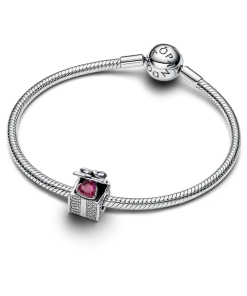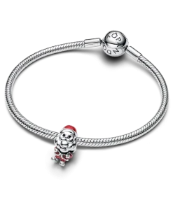 Get ready for festive fun with the Santa’s Coming to Town Charm Trio, a delightful set that captures the magic of the season. The first charm features a jolly Santa, crafted in sterling silver with glittery enamel on his iconic outfit and lifelike facial details—his body even moves side to side for an extra playful touch. The second charm is an open present, adorned with ribbon details, sparkling pavé, and a radiant red heart-shaped stone inside. Engraved with the message