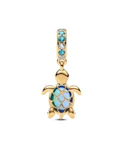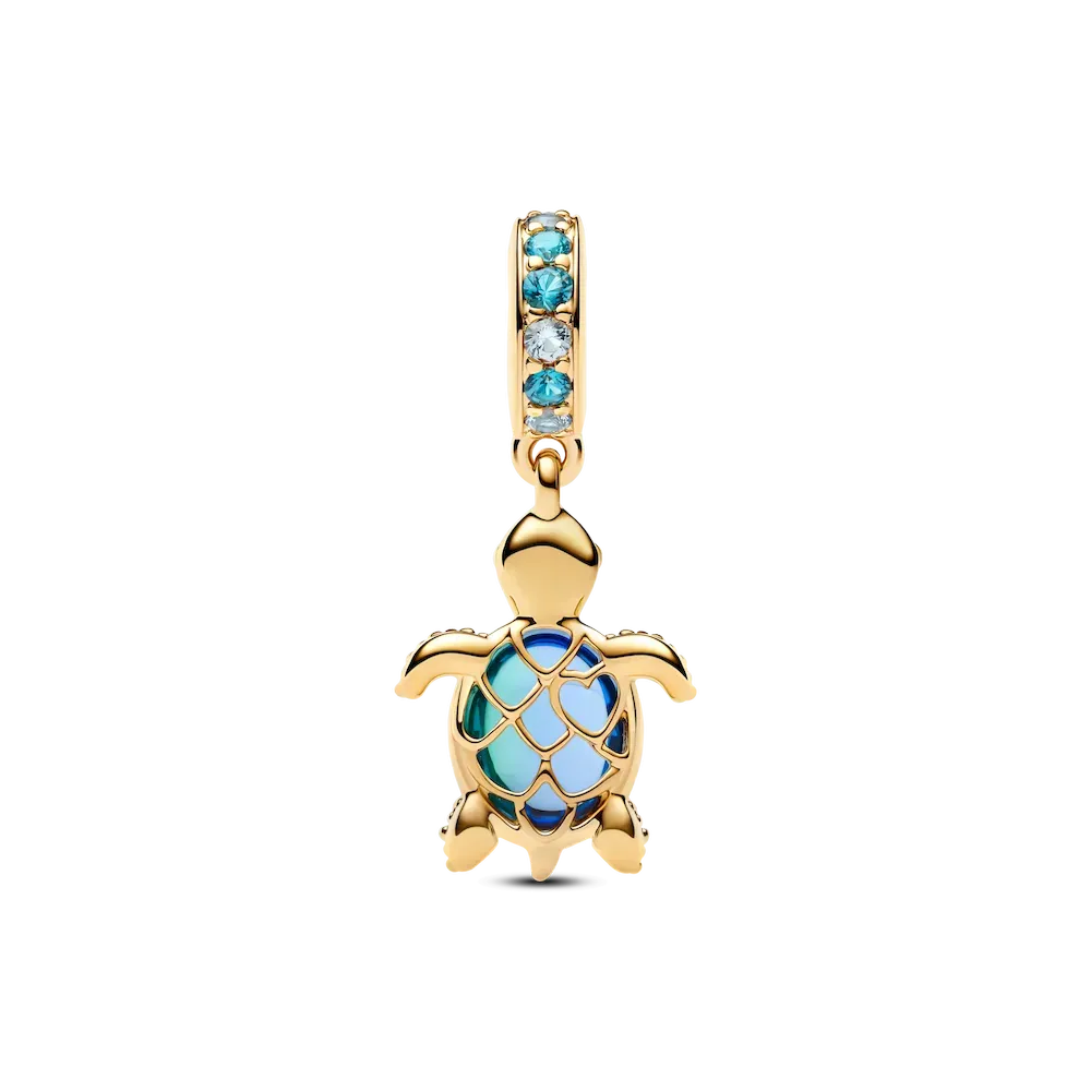 Celebrate the beauty of the deep blue sea with this sea turtle charm, featuring a peacock Murano glass shell, shimmering crystals and a cut-out pattern that shines through.