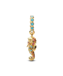 Celebrate the magic of the sea with a charming seahorse, symbolizing good luck and gentle strength, crafted with clear cubic zirconia, capri blue crystal, and phlox pink crystal.