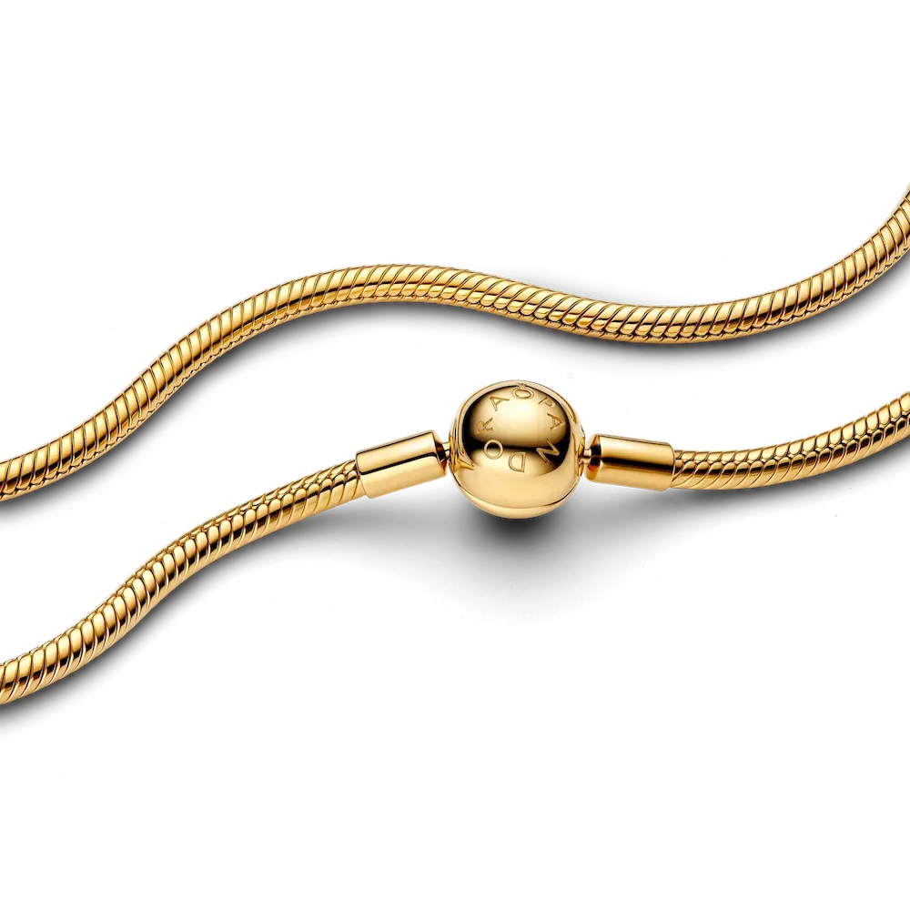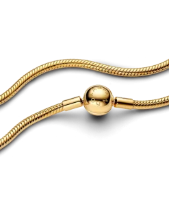 Effortlessly sleek, this snake chain necklace features a warm-toned finish and a signature clasp – perfect for layering or showcasing your favorite charms.