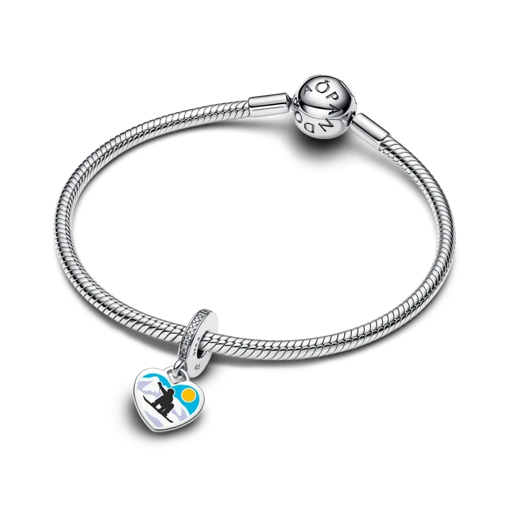 Take your style on the perfect ride. Crafted in sterling silver, this heart-shaped pendant features a picturesque scene: a snowboarder mid-jump on a snowy mountain, with beautiful blue and white enamel capturing the icy slopes and sunny sky. Bring the cool factor to your look with a little edge and all the thrills.