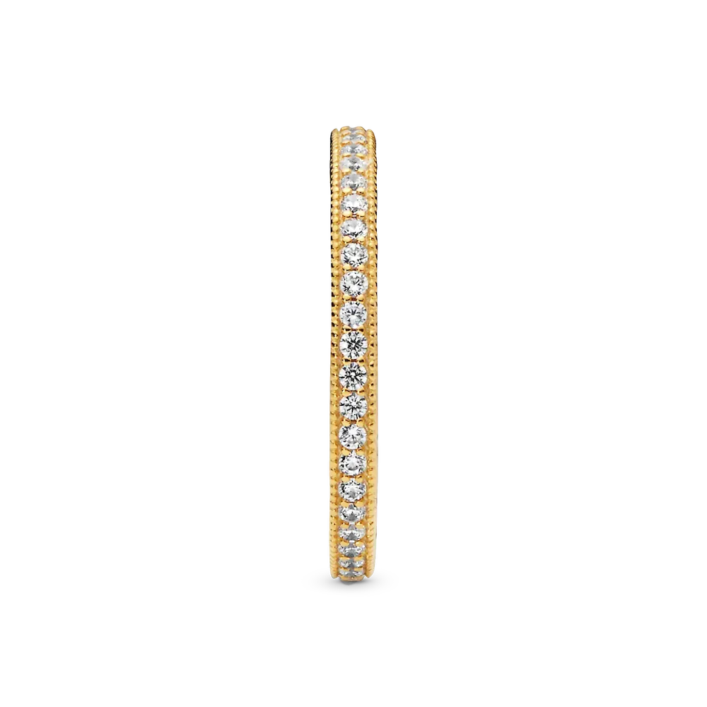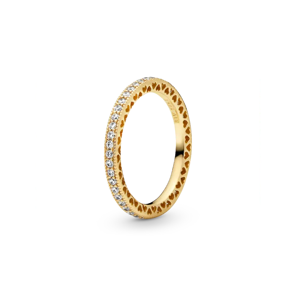 This striking 14k gold-plated Sparkle & Hearts Ring lends a beautiful glow to your everyday look thanks to its combination of shimmering cubic zirconia and radiant metal. Cut-out hearts complete the design to create a versatile eternity band style ring that you can stack with your other favourites or wear by itself as a standalone statement.