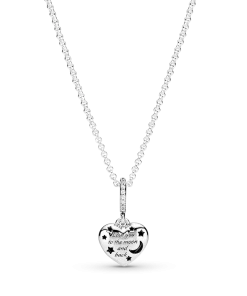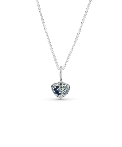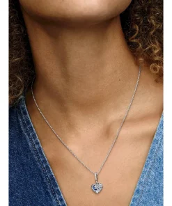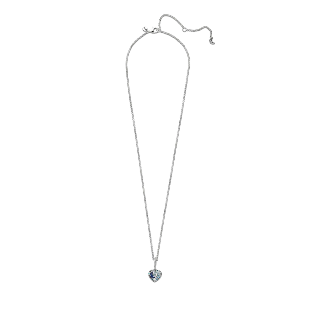 Celebrate the beautiful night sky with the Sparkling Blue Moon & Stars Heart Necklace. Hand-finished in sterling silver, this heart-shaped pendant is decorated with blue stones, silver stars and features a half-moon stone, which is a brand-new addition to Pandora jewelry. Including cut-out moons and stars, there’s the engraving “Love you to the moon and back” on the reverse. Adjustable in length, a dangling moon and a Pandora crown O monogram logo tag feature at the ends of the chain. Show someone special you appreciate them with this celestial pendant.