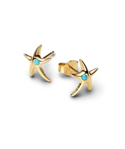 Lean into your star energy. This ocean-inspired jewelry set includes a 14k gold-plated chain necklace and starfish charm detailed with man-made crystals in capri blue, plus matching stud earrings in a starfish design.