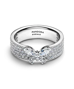 Wear a statement piece that sparkles and soars. Our wide, sterling silver butterfly ring features 99 cubic zirconia stones, combining beauty and strength in equal measures.