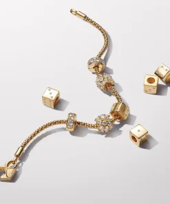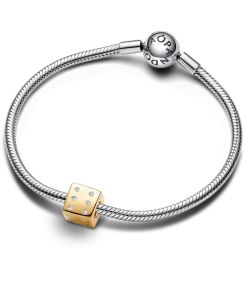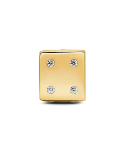 Add a touch of playfulness to your collection with the Sparkling Dice Charm. Plated with lustrous 14k gold, this Pandora dice charm features intricately set clear cubic zirconia stones representing classic dice pips. With sides showcasing numbers one, four, six and three, this charm invites you to embrace the unpredictability of life. Roll the dice and seize the opportunity, for in every sparkle lies the thrill of chance and the hope for something extraordinary.