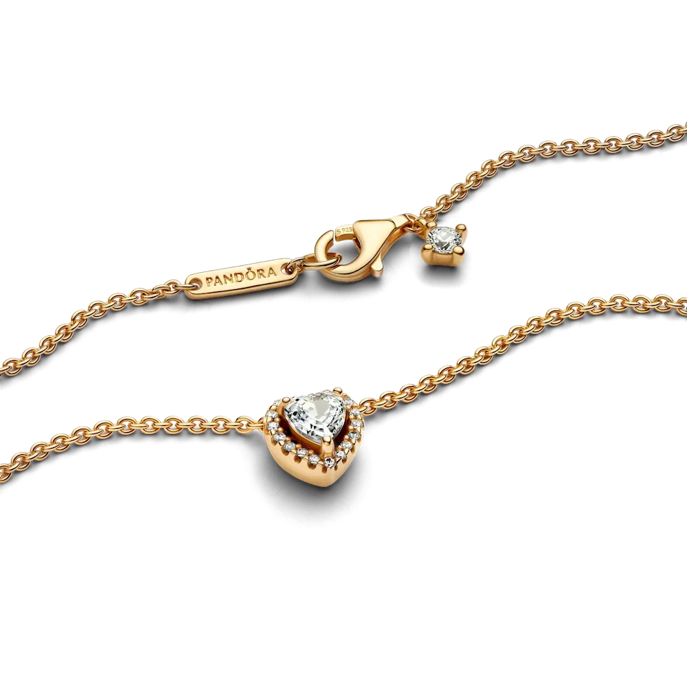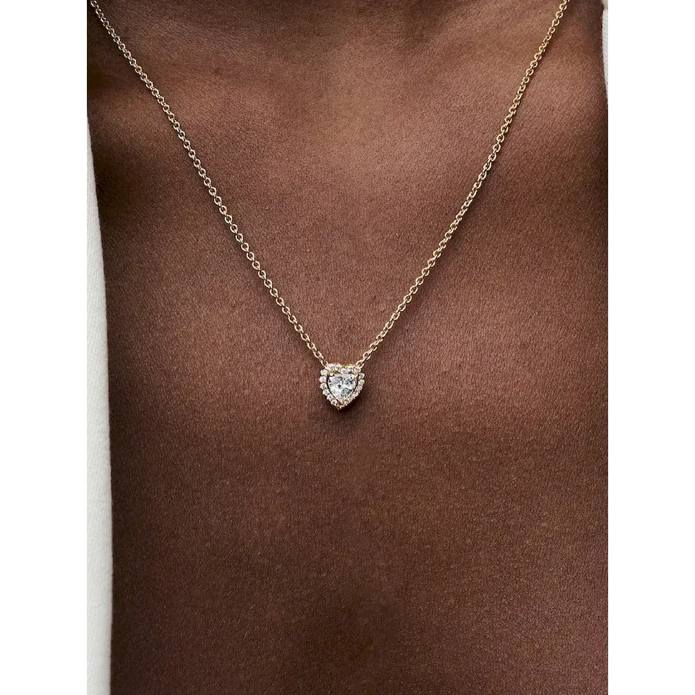 Gift a timeless classic with the Sparkling Elevated Heart Jewelry Gift Set. This 14k gold-plated set includes a necklace and stud earrings inspired by classic design elements from the Pandora Timeless collection. The pendant and earring design features a raised heart-shaped central stone surrounded by a halo of clear cubic zirconia. The necklace length is adjustable, making this a beautiful and versatile set for a look filled with love.