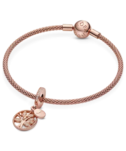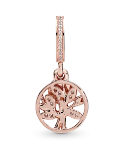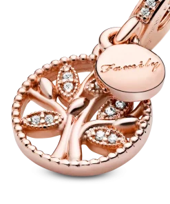 If you’re looking for pieces with a personal narrative, this 14k rose gold-plated Sparkling Family Tree Dangle Charm may well be your next go-to. The family tree holds personal symbolism as your family grows and blossoms. Expertly hand-finished in 14k rose gold plating, the family tree design is accented with cubic zirconia for subtle sparkle. Wear it on your Pandora Moments bracelet to celebrate the generations of your family and their special connections.
