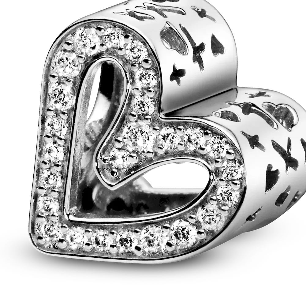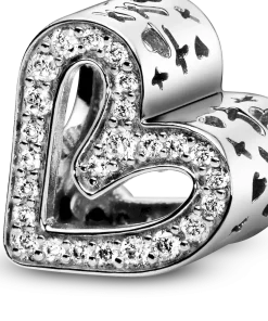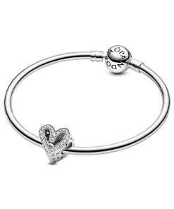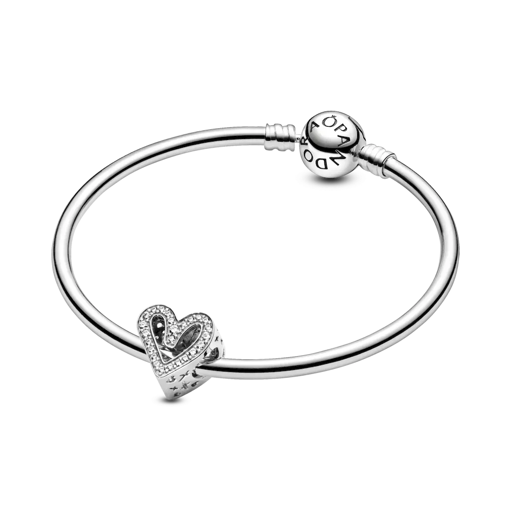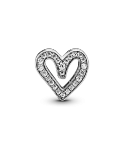Carry your love with you as you go with this sterling silver Sparkling Freehand Heart Charm, designed to represent perfectly imperfect love. Who does the freehand heart bring to mind for you? 50 brilliant-cut clear cubic zirconia make love sparkle and cut-outs around the edges resemble “xoxo”. This charm is the perfect way to show the world what a gift the love in your life is. Style it with your other favorite Pandora charms.