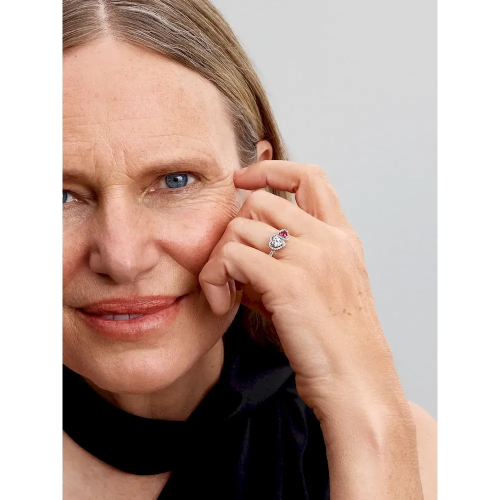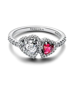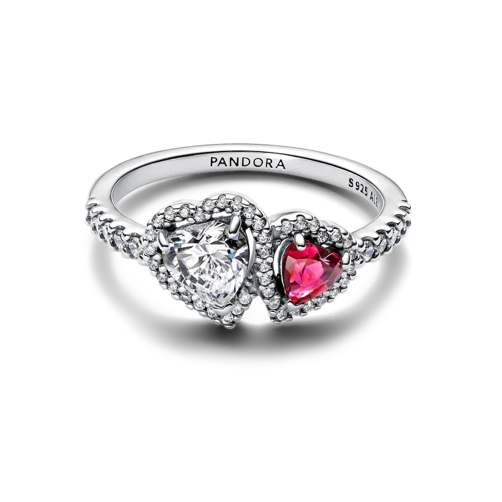 The Sparkling Halo Hearts Ring Set is a radiant celebration of love and connection. This set features two stunning rings, each showcasing heart-cut cubic zirconia stones surrounded by shimmering pavé. One ring pairs a clear cubic zirconia with a vibrant red man-made crystal, while the other features two clear stones for a classic look. Crafted in sterling silver, both rings are designed to symbolize the harmony and unwavering support shared between two souls. Whether worn as a stack or solo statement, this set adds a touch of love and elegance to any occasion.