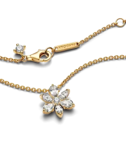 Choose nature-inspired shine with the Sparkling Herbarium Cluster Pendant Necklace. Featuring sparkling stones in the shape of a flower, this 14k gold-plated necklace is inspired by collections of pressed flowers. Featuring marquise, pear and round brilliant-cut cubic zirconia, this flower-shaped necklace adds elevated sparkle to every style. Layer and combine different metals (or different coloured stones) together for a look that echoes the everlasting beauty of nature.
