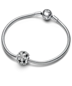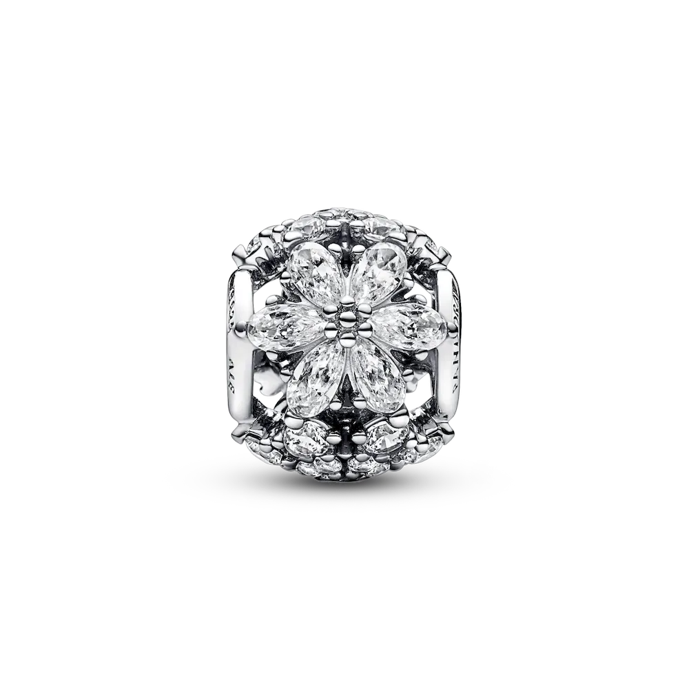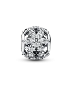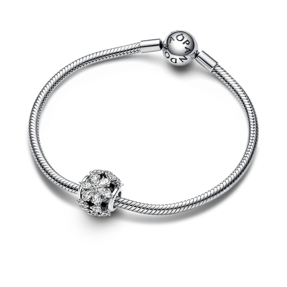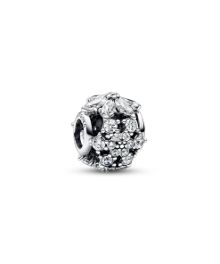 Bring the beauty of nature to your jewelry with the Sparkling Herbarium Cluster Round Charm. This sterling silver charm is composed of four clusters of clear cubic zirconia stones forming a spherical shape. The clusters alternate between two subtly different designs, composed of round or pear-shaped stones with a cluster of microbeads at the center. An elegant reinterpretation of how nature forms beautiful shapes with petal and leaf-inspired elements.