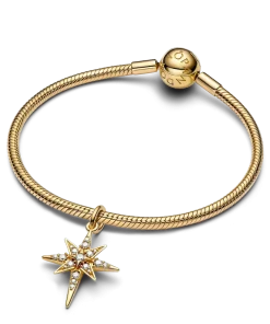 Be guided by the light and carry your own celestial compass with our Sparkling North Star Dangle Charm. Crafted in 14k gold plating, this charm features layers of sparkling stones and radiant metal to create dimension and catch more light. Add a touch of celestial symbolism to your stack or gift it to the star of your life.