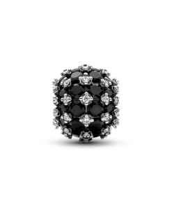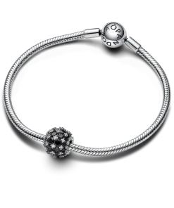 Add a touch of timeless sparkle to your look with the elegant and symbolic Sparkling Pavé Round Black Charm. This spherical sterling silver charm is set with a total of 88 clear and black cubic zirconia stones in different sizes, creating a voluminous geometric effect. 88 is a powerful number that represents progress, success and good fortune. It also resembles a double infinity symbol, representing the unlimited possibilities the future holds. Add it to your favorite jewelry styling or gift it to a loved one as a symbol of good things ahead.