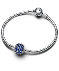 The Sparkling Pavé Round Blue Charm is a bold addition to your collection of sterling silver charms. This sparkling pavé charm is set with precisely 88 stones. Why? Because the number 88 is thought to signify achievement, progress and success, and resembles an infinity sign. This blue man-made crystal and clear cubic zirconia charm is a sparkling reminder of eternal possibility. Our classic Sparkling Pavé Round Charm has been updated in a bold, blue hue, making it the ultimate piece for a solo style statement, or as a partner to your everyday favorites.