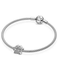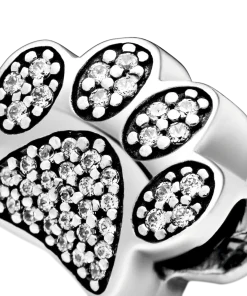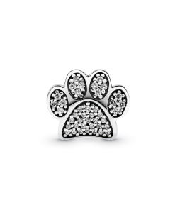Celebrate your favorite four-legged friend with this Pandora paw print charm. Finely crafted in sterling silver, this adorable charm is embellished with sparkling cubic zirconia stones. A delightful gift for any cat or dog lover, it will add whimsical charm to your Pandora jewelry collection.