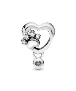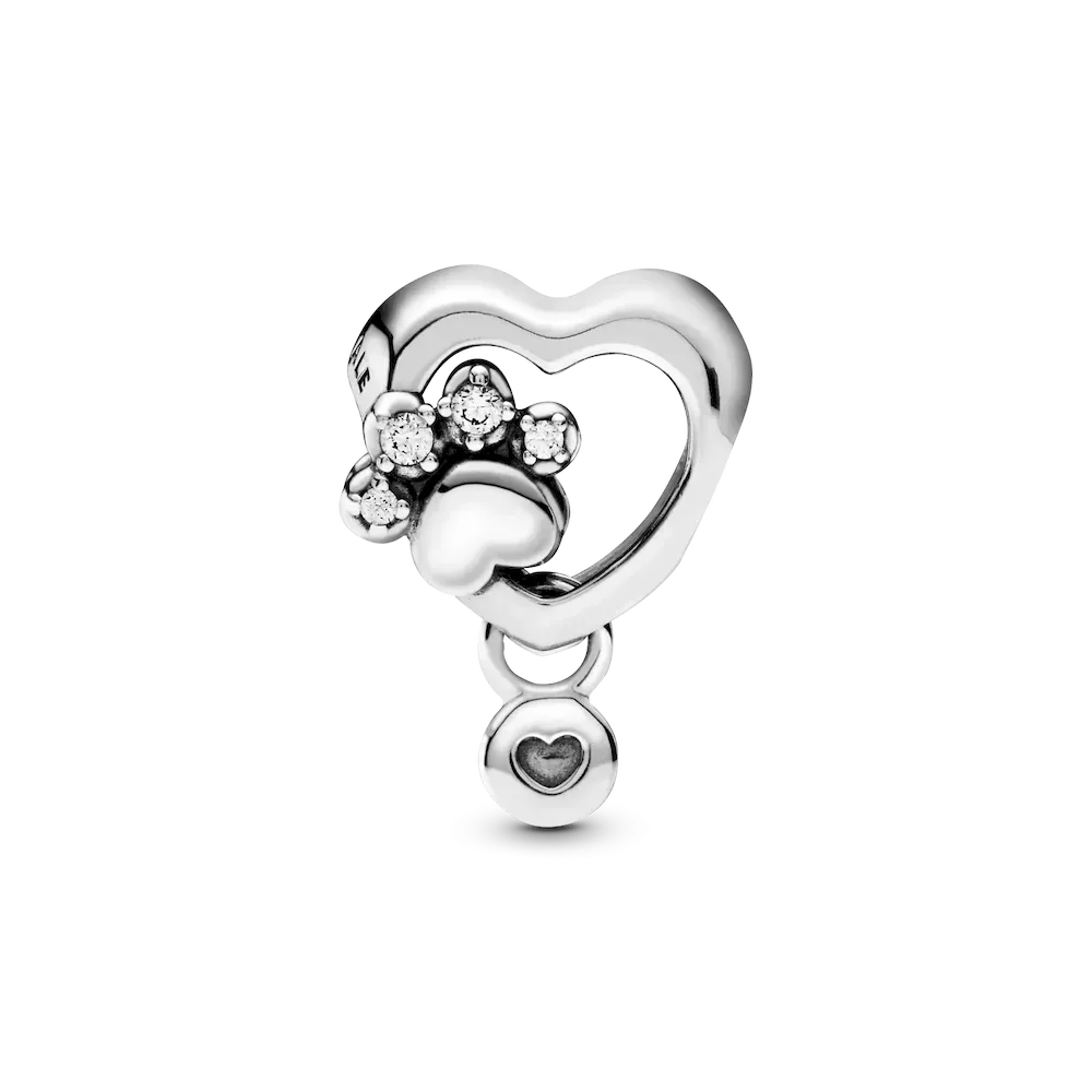 This hand-finished Sparkling Paw Print & Heart Charm adds a sweet touch to any outfit. Made from sterling silver, the heart-shaped charm features a dog’s paw in the center and is filled with clear cubic zirconia details for an extra touch of sparkle. A small dangling tag with the engraving “Fur mom” shows that pets are important to us and are a big, lovable part of our families and lives.