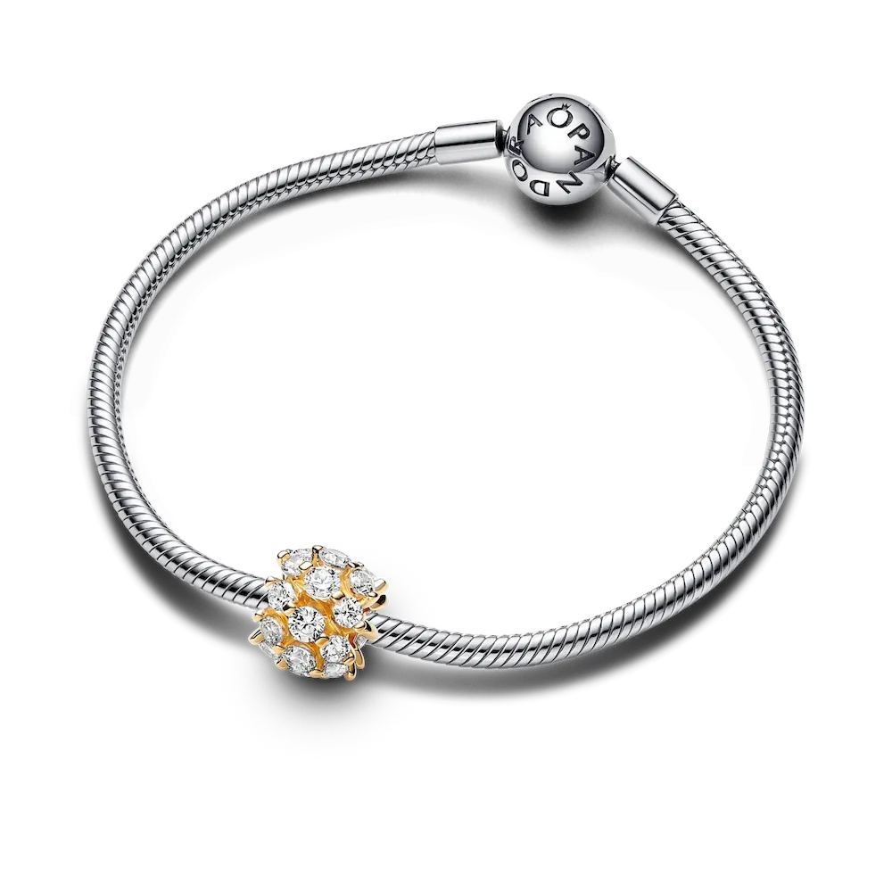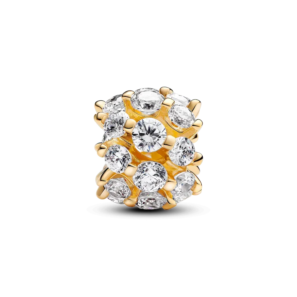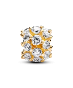 Elevate your stack with the Sparkling Round Charm, a Pandora Moments piece plated with the warm glow of 14k gold. The charm’s standout motif showcases a sophisticated rounded design, accented by sparkling stones all around, which are set in prominent prongs. The stones are set in rows and there are three in each one to allow for more radiance. Perfect for adding a touch of shine to your existing collection or for gifting it to the sparkle lover in your life.
