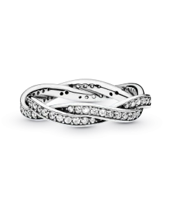 Show that style is forever with this sterling silver ring. Made from sterling silver, one of our three signature metals, the glittering band ring is made from twisted lines of pavé-set cubic zirconia. Reminiscent of an infinity symbol, it can be worn for just about any occasion – and also to symbolize a bond of love. Try stacking multiples together for a special occasion.