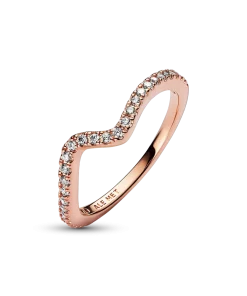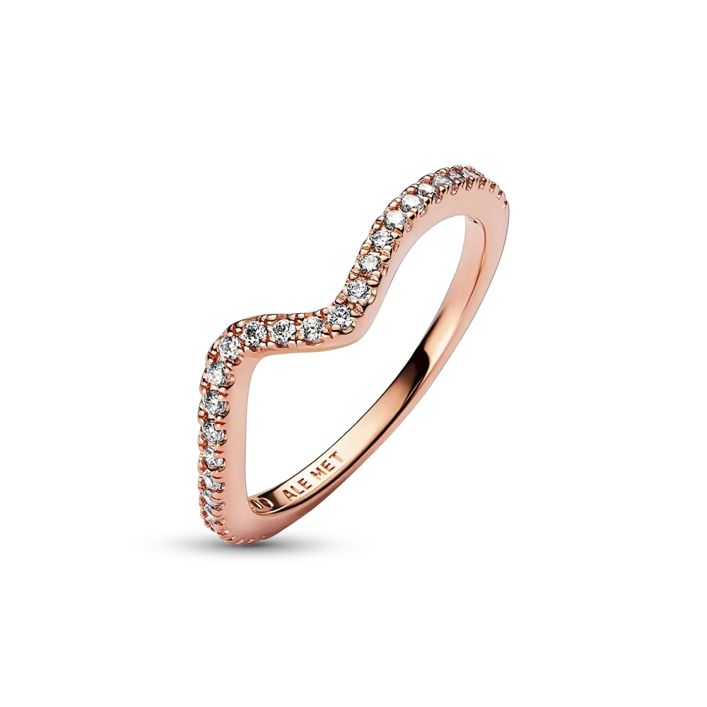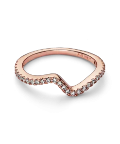 Hand-finished in 14k rose gold plating, our Sparkling Wave Ring curves to resemble the movement of a wave and features a row of round brilliant-cut clear cubic zirconia along its front. Wear it solo or stacked for a contemporary look you’ll love for years to come.