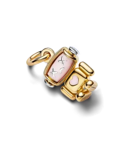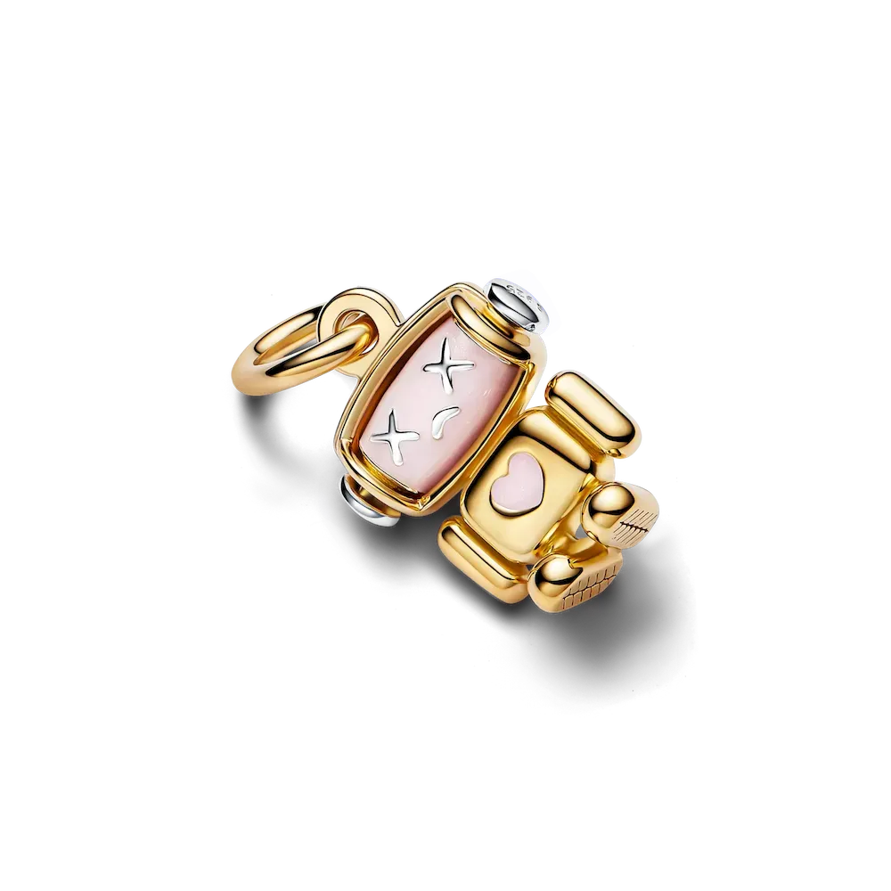 Who says robots don’t have feelings? Our sterling silver and 14k gold-plated robot has changeable facial expressions and a shimmering pink enamel heart hand-painted on their chest.