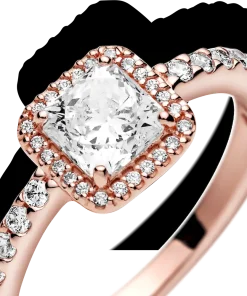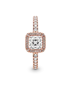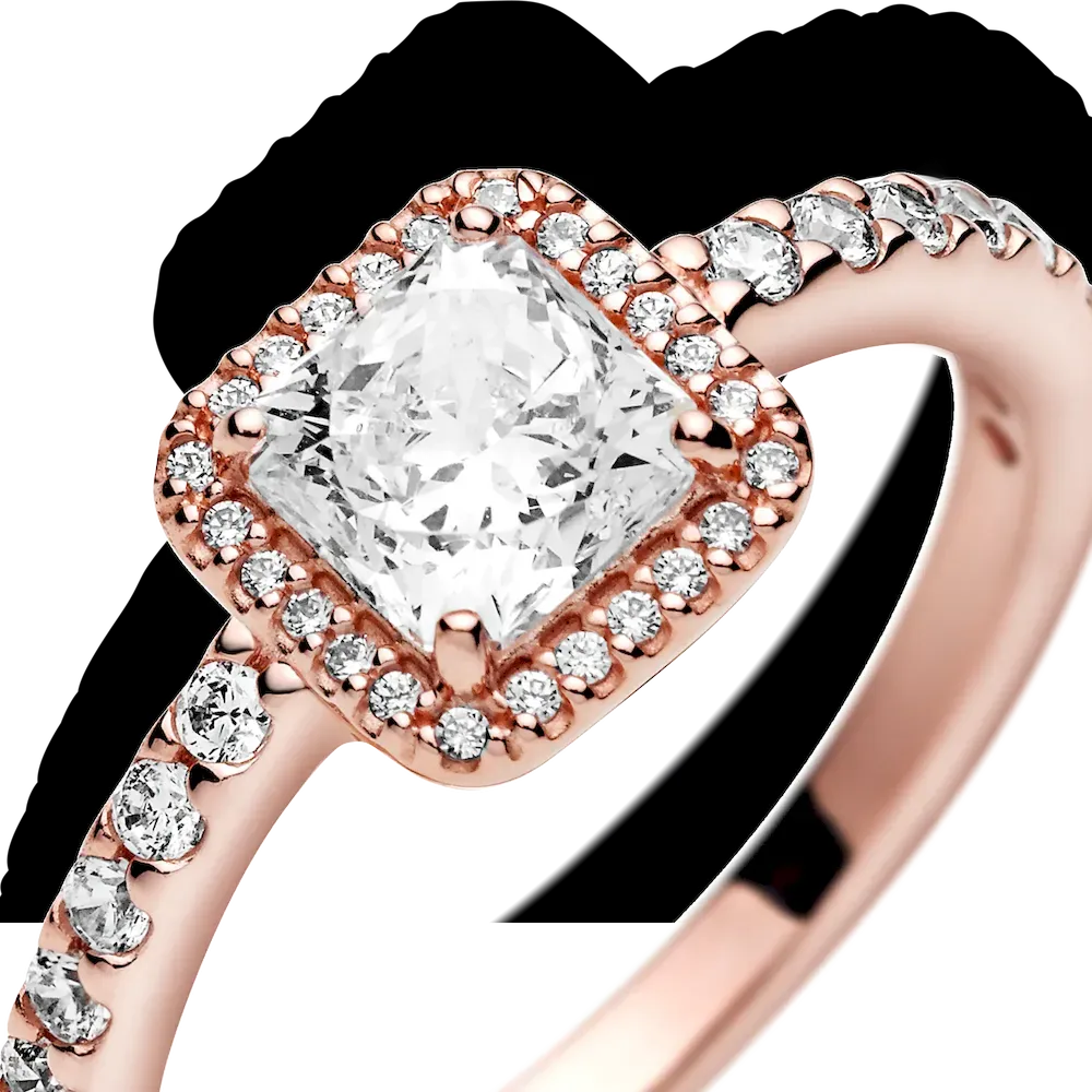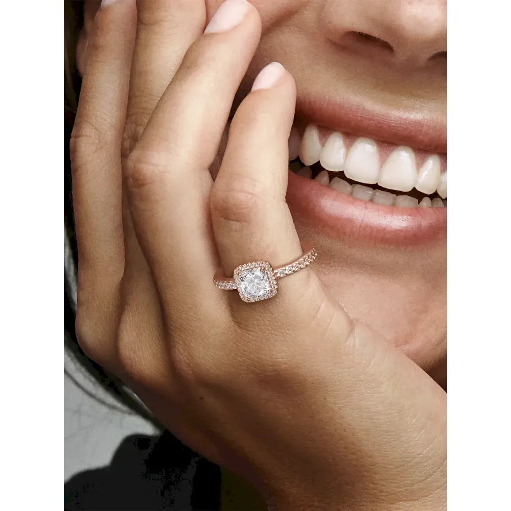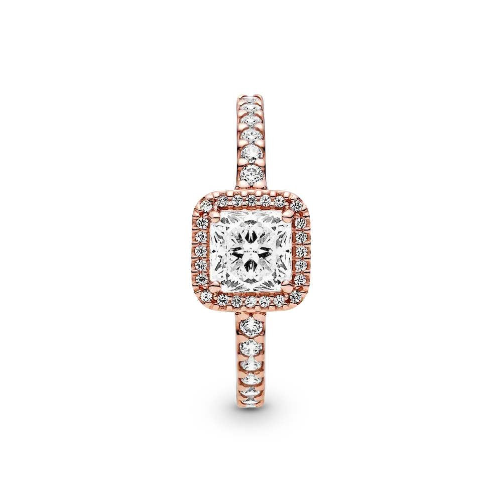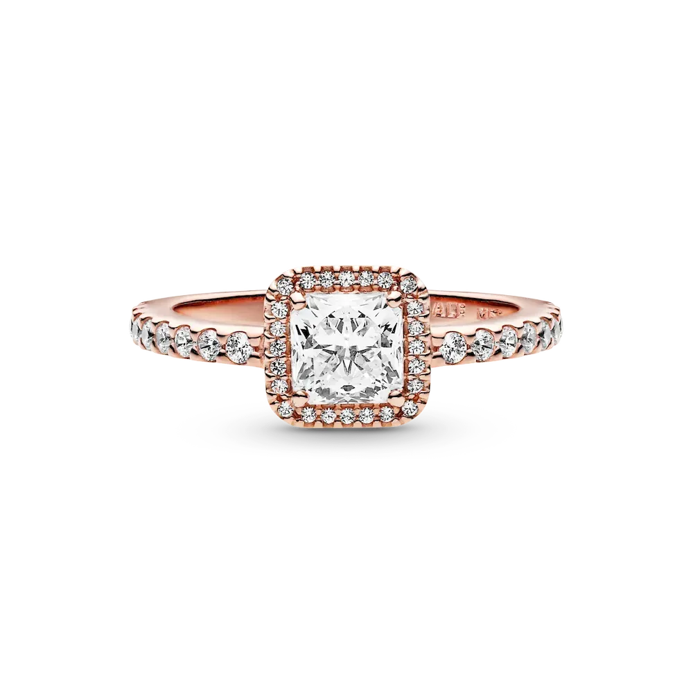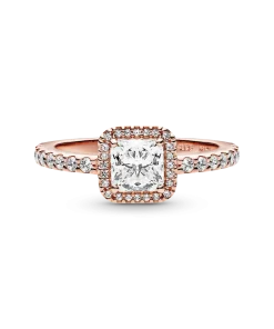 This stunning, vintage-inspired Square Sparkle Halo Ring is one you’ll treasure forever. Plated with 14k rose gold, this sophisticated style is embellished with sparkling cubic zirconia stones and features a large, square-cut stone as the centrepiece. Wear it on its own as a statement cocktail ring, or style it with contrasting Pandora rings for a fresh, contemporary look.