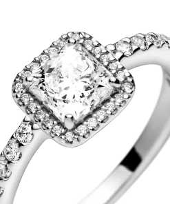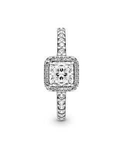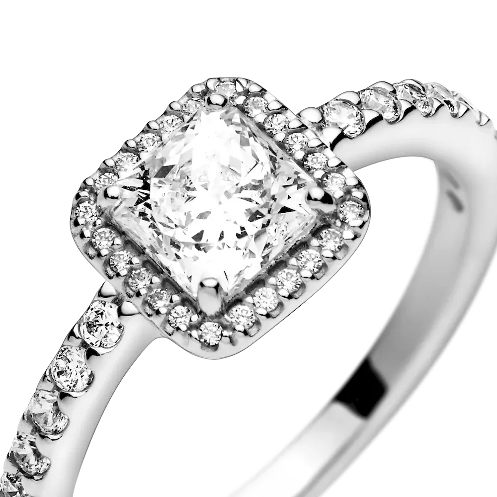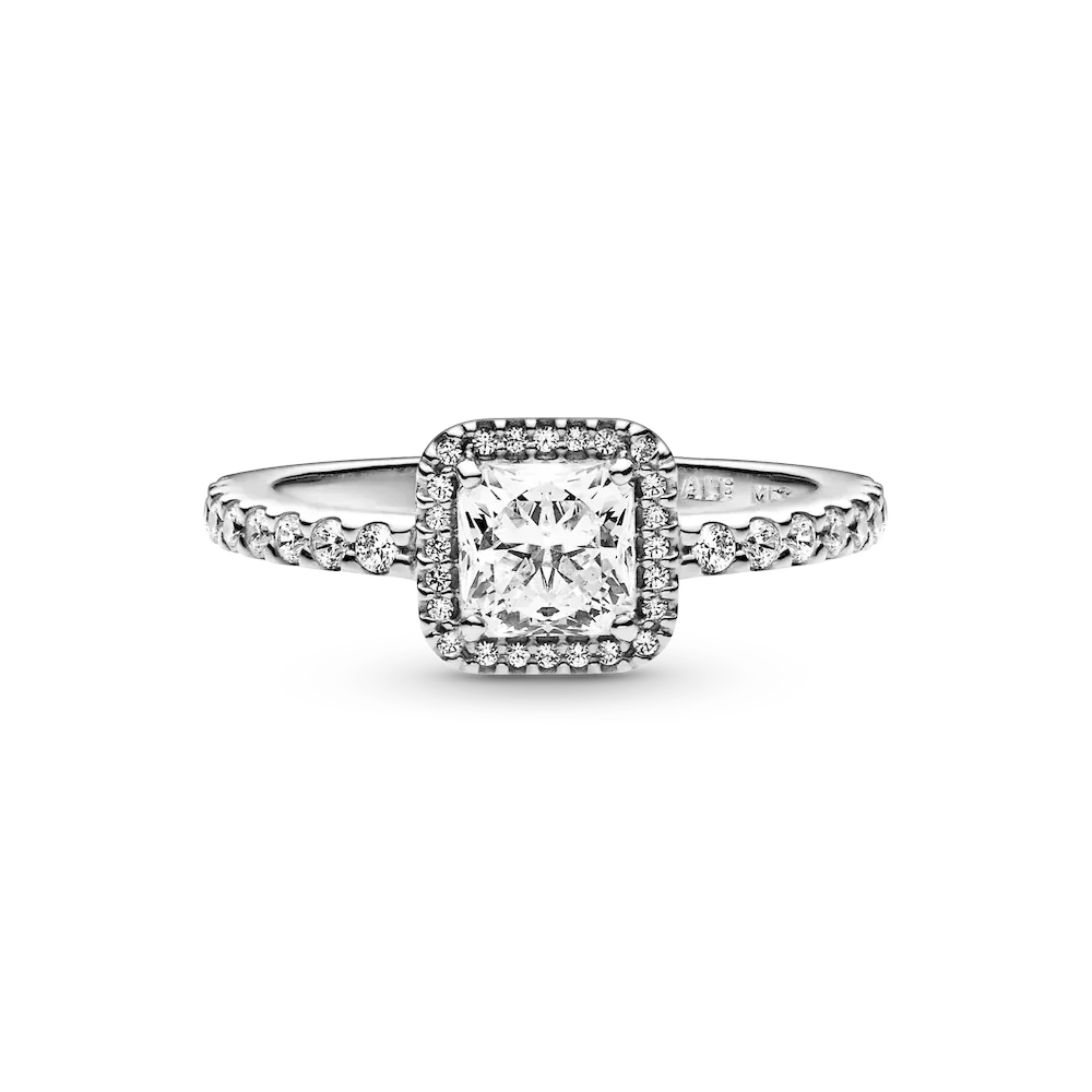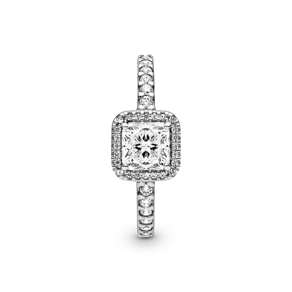This stunning vintage-inspired ring is one you’ll treasure forever. Crafted in sterling silver, this sophisticated style is embellished with sparkling cubic zirconia stones and features a large, square-cut stone as the centerpiece. Wear it on its own as a statement cocktail ring or style it with contrasting Pandora rings for a fresh, contemporary look.