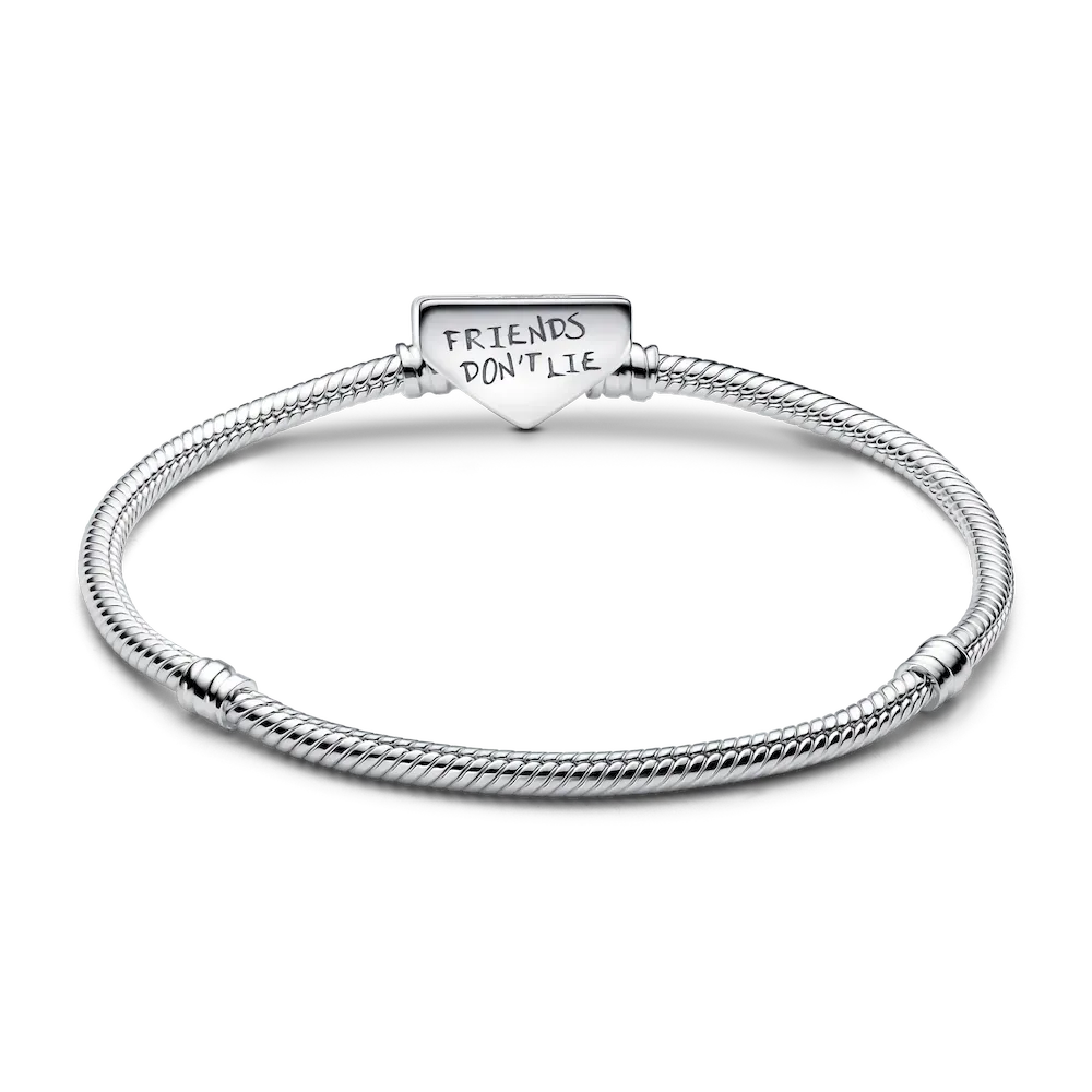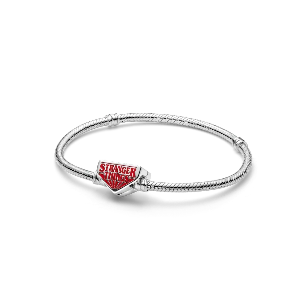 Celebrate loyalty, friendship and your love of Hawkins, with this exclusive Pandora x Stranger Things snake chain bracelet. Designed with a clasp engraved with