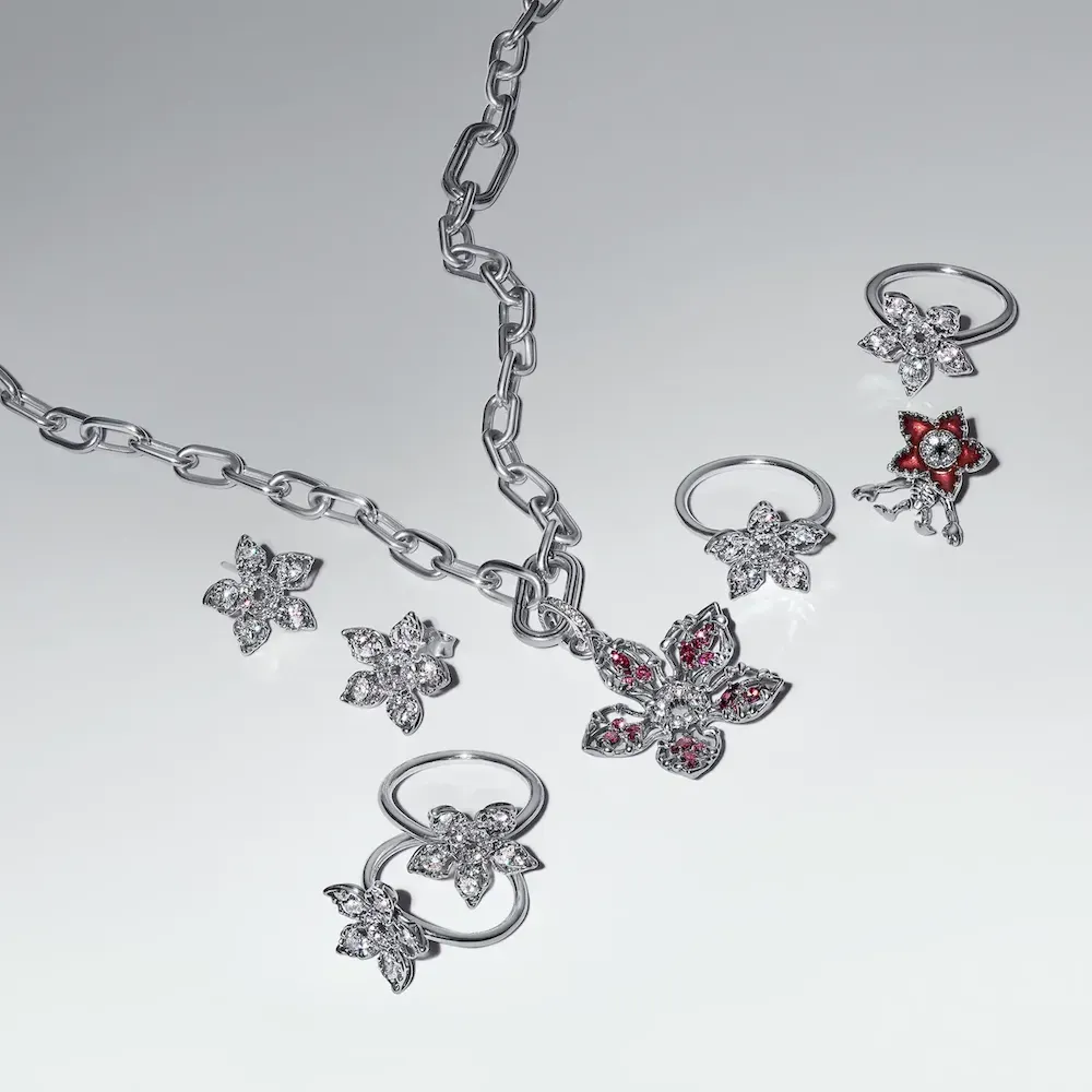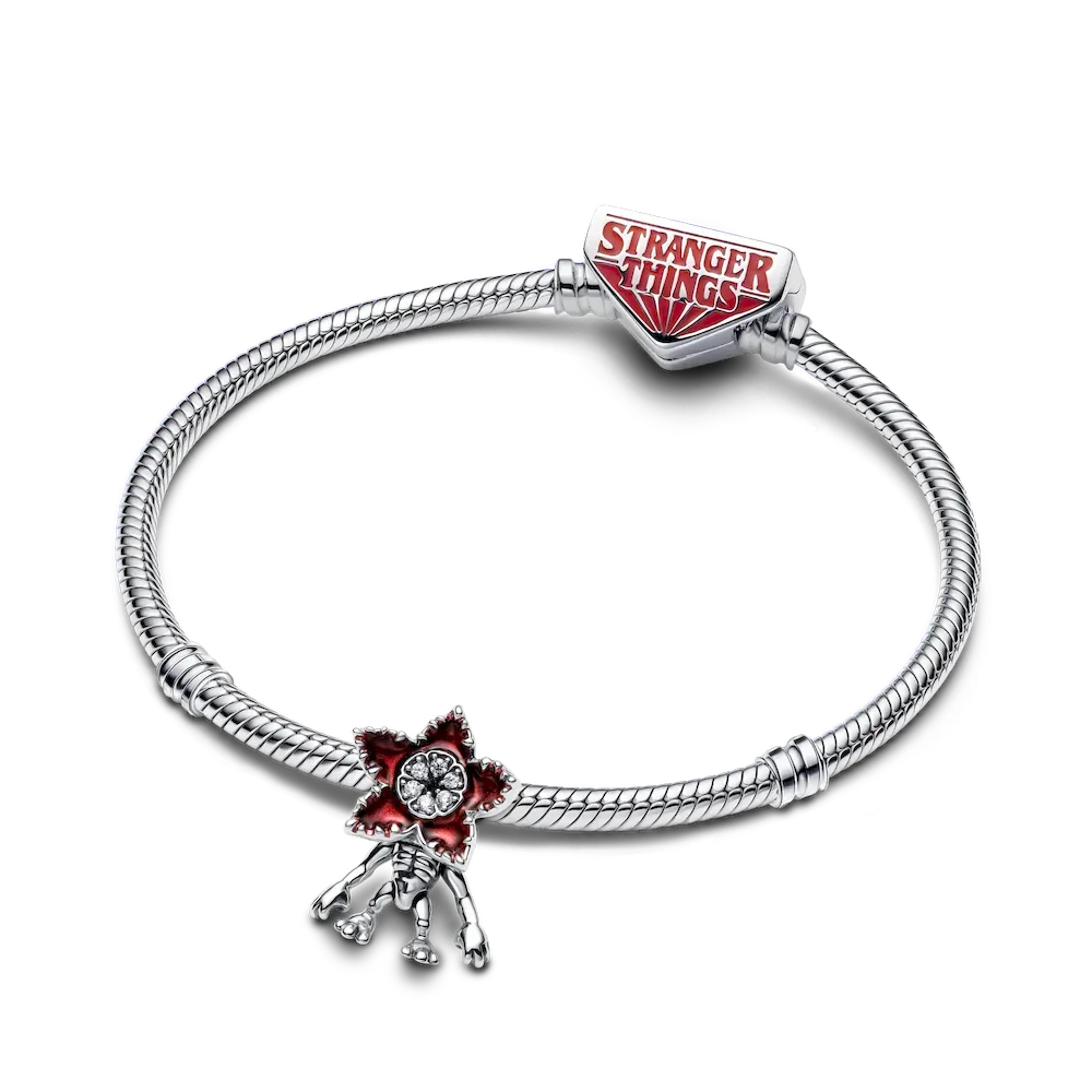 Don’t just face your Demogorgons… wear them with our Stranger Things Moveable Demogorgon Charm. Crafted in sterling silver with enamel details, the monster comes to life with a flower-like mouth featuring stones resembling sharp teeth, and moveable arms and legs. Carry it as a reminder that you can be brave and bold, even in the unknown.