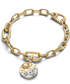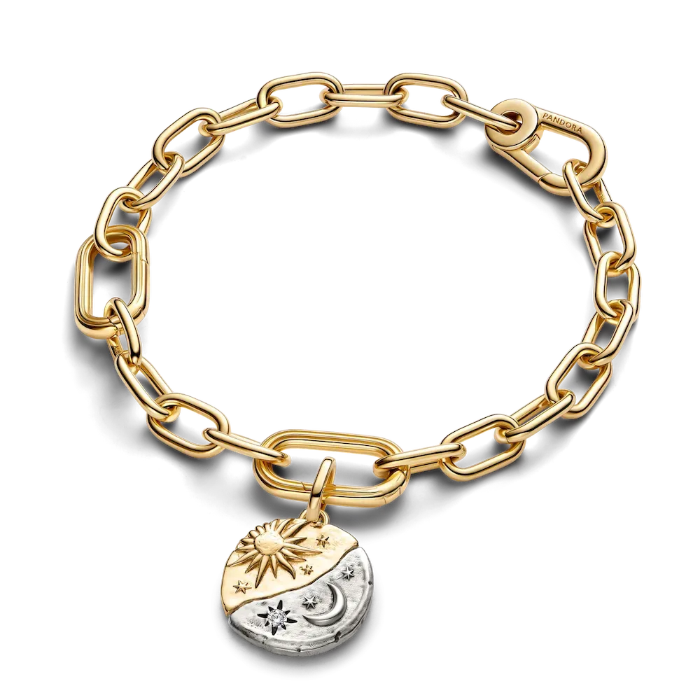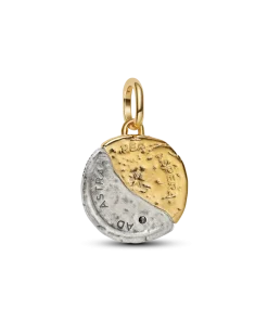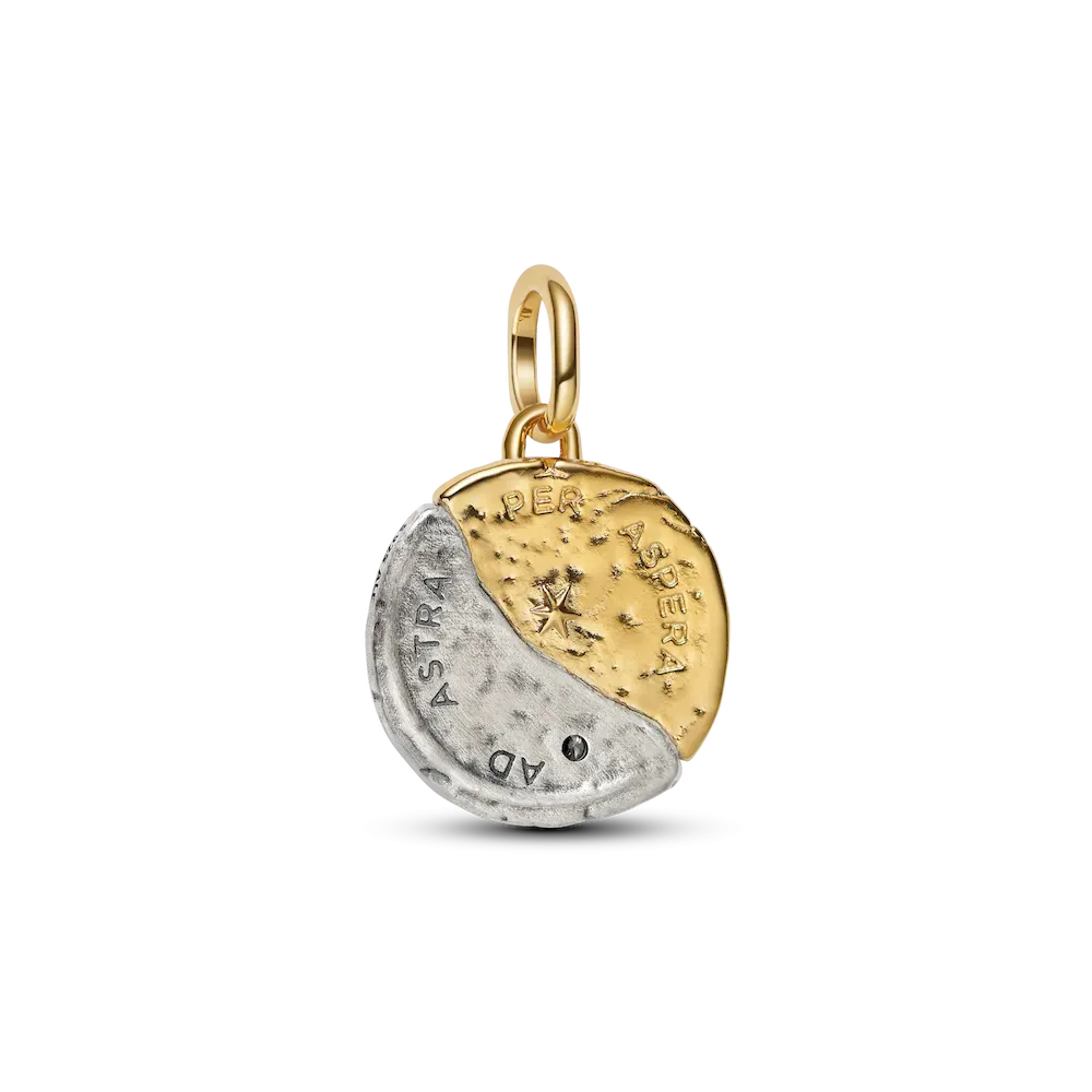 Look to the stars. Shine your light. This mixed metal medallion features a moon and stars motif paired with a powerful Latin mantra: ‘PER ASPERA AD ASTRA’ — ‘THROUGH HARDSHIPS TO THE STARS’.