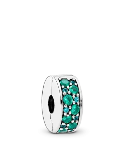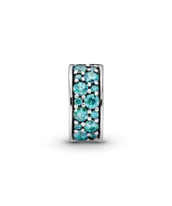 Add balance and beauty to your bracelet with our sterling silver clip charm, hand-finished for a human touch. It’s been lovingly pavé-set with teal-colored cubic zirconia that lend subtle sparkle to your look. Clip multiples onto your Pandora Moments bracelet to create a symmetrical styling. Or just add one. Your mood sets the tone. This clip charm features a silicone grip, does not fit onto threads (two raised charm dividers.) This charm can be styled anywhere else on the bracelet.