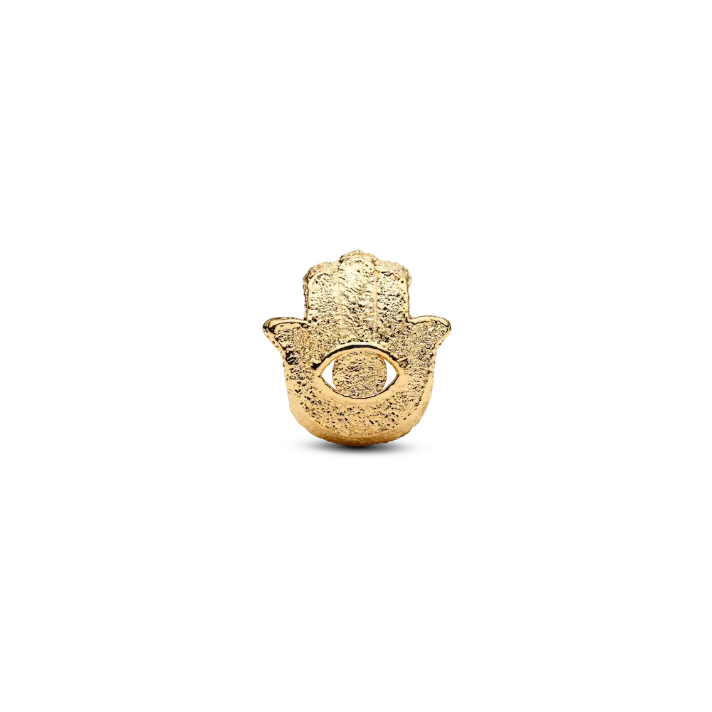 Good vibes only. Our 14k gold-plated Hamsa hand mini charm is small but mighty. With its diamond-point texture and outlined eye, let it be your daily reminder that protection and positivity are always within reach.