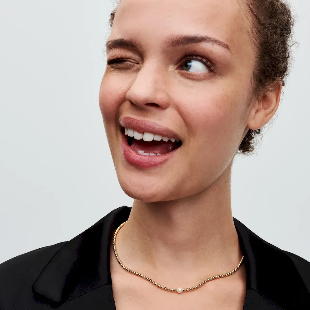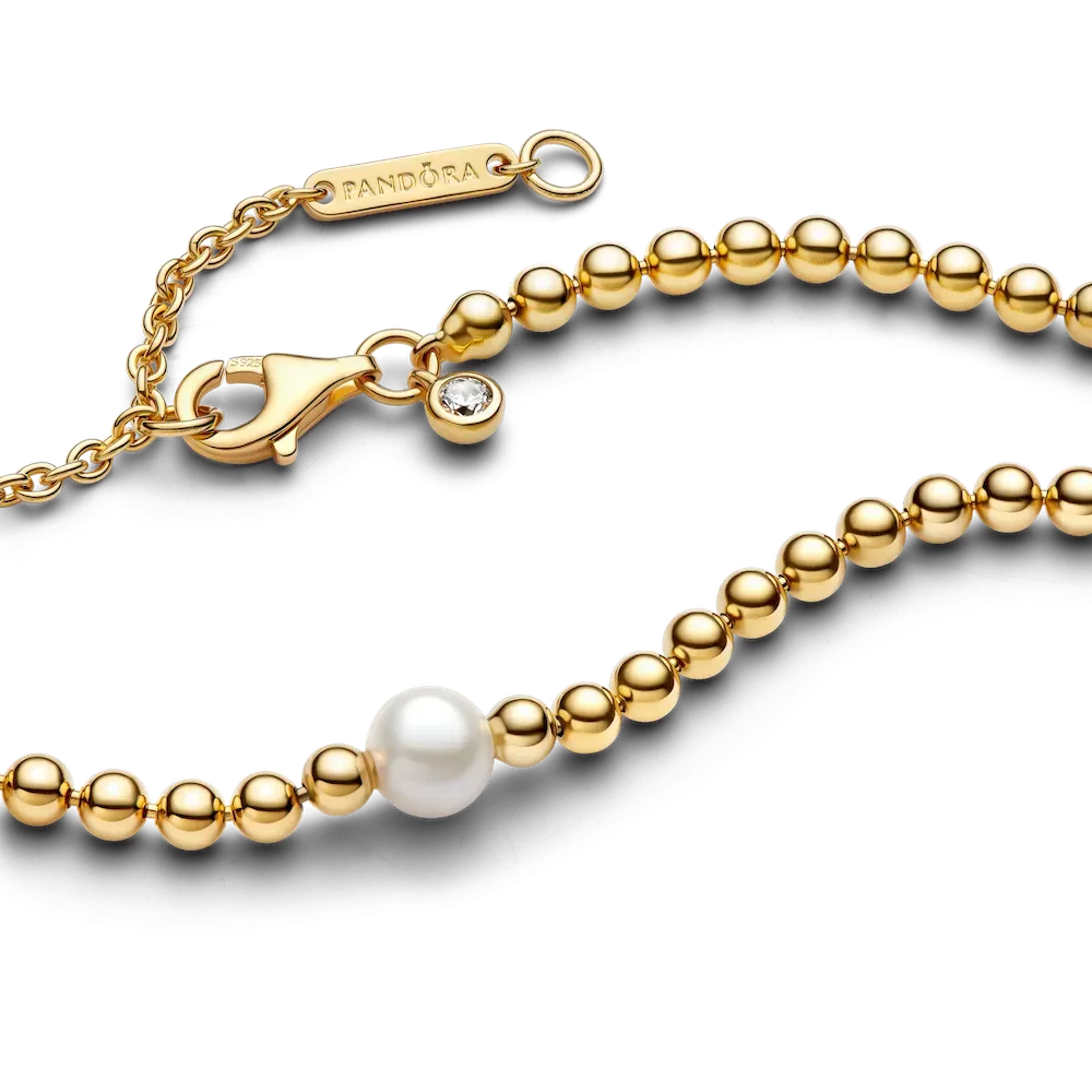 Elevate your style with our Treated Freshwater Cultured Pearl & Beads Collier Necklace. Plated with 14k gold, the necklace features a lustrous white treated freshwater cultured pearl set among the beads. The pearl and bead motif, with adjustable lengths, adds a touch of modern elegance to any outfit. This beaded necklace is a timeless addition to your jewelry collection, perfect for gifting or enhancing your everyday look. Please note each treated freshwater cultured pearl is unique and can vary in size and color; normal wear and tear may occur with this material. Our freshwater cultured pearls are treated with bleaching and luster enhancement.