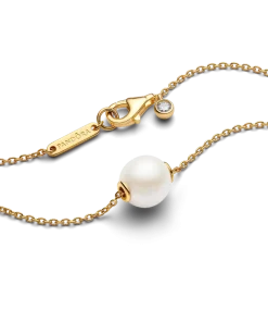 Elevate your style with our Treated Freshwater Cultured Pearl Collier Necklace from our Pandora Timeless collection. This 14k gold-plated piece features an adjustable cable chain with a luminous treated freshwater cultured pearl pendant. A clear cubic zirconia by the clasp adds a touch of sparkle. This necklace represents the fusion of classic and contemporary, making it a perfect choice for both casual and special occasions. Please note that each treated freshwater cultured pearl is unique and can vary in size and color; normal wear and tear may occur with this material. Our freshwater cultured pearls are treated with bleaching and luster enhancement.