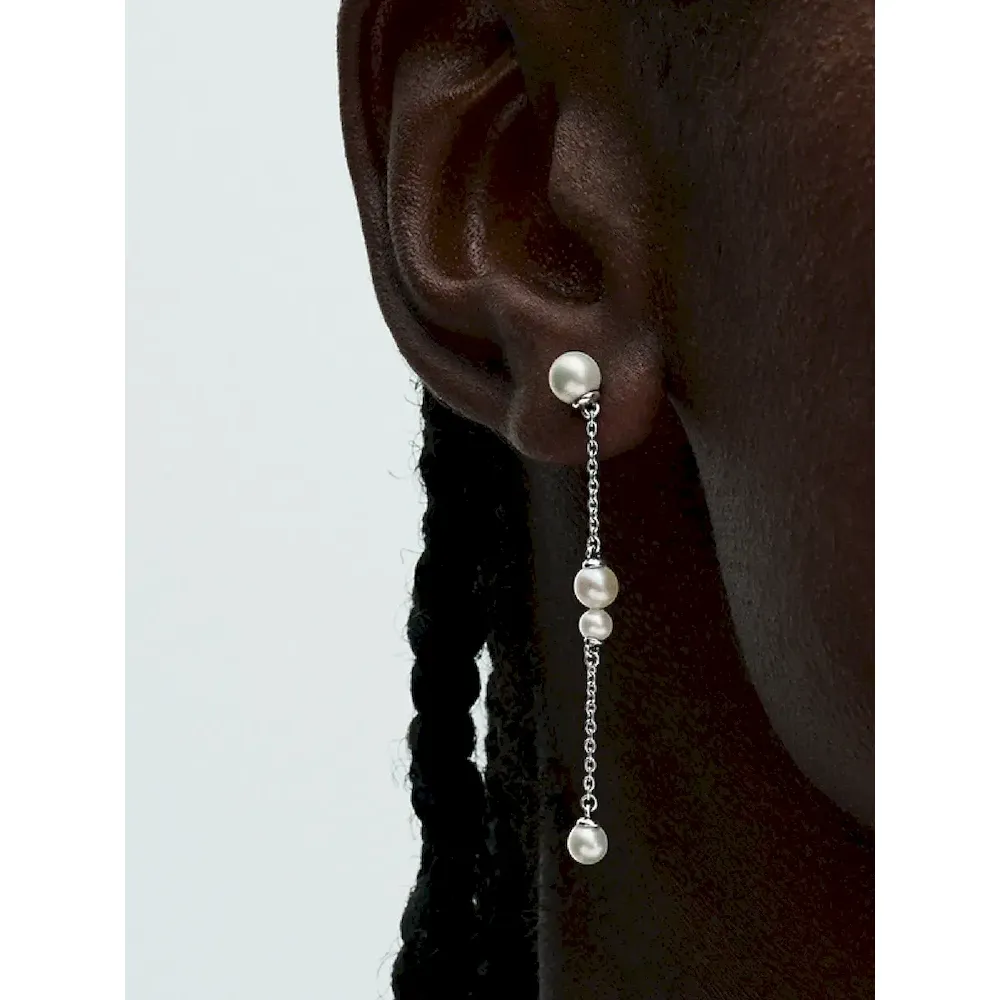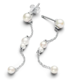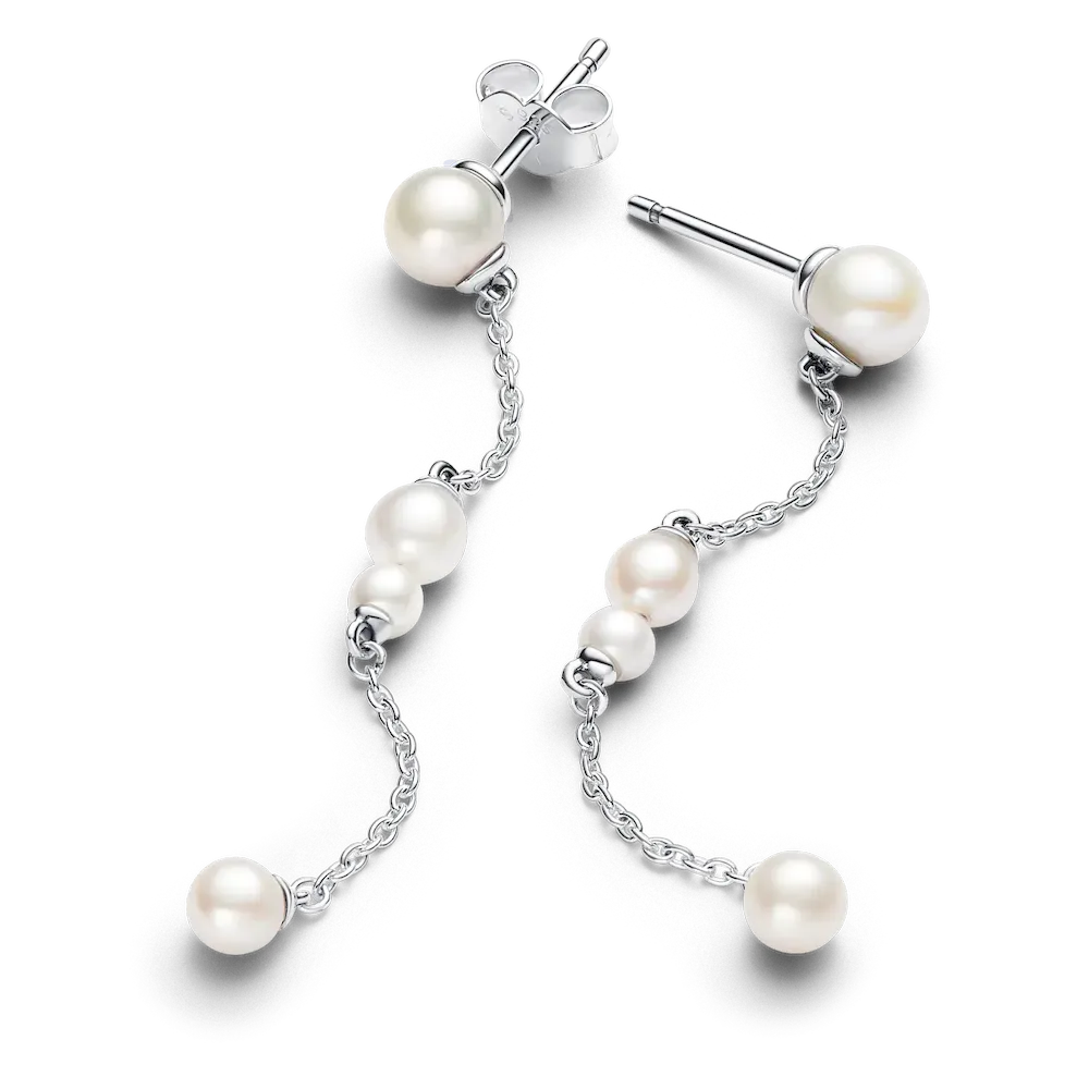 Make elegance your mantra with our Treated Freshwater Cultured Pearl Drop Earrings. Crafted in sterling silver, these drop earrings feature a cascade of four treated freshwater cultured pearls on each piece. The chain motif connects each pearl, creating a unique play of dimensions. Intentionally different in size, the pearls symbolize beauty, love, and wisdom. Perfectly paired with heart-shaped butterfly backs, these earrings are a classic addition to your jewelry collection. Please note each treated freshwater cultured pearl is unique and can vary in size and color; normal wear and tear may occur with this material. Our freshwater cultured pearls are treated with bleaching and luster enhancement.