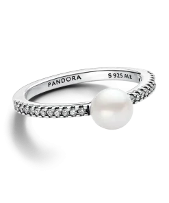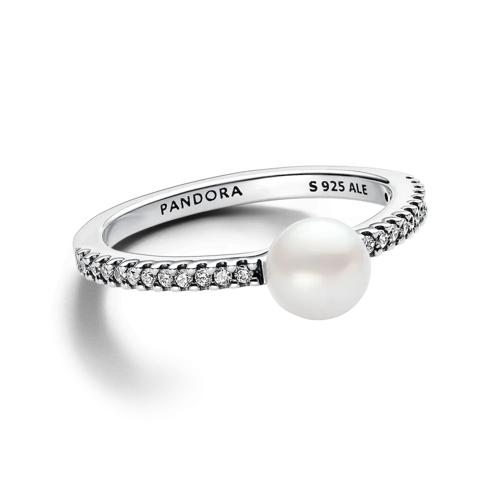 Embrace cool tones with the Pandora Timeless Treated Freshwater Cultured Pearl & Pavé Ring in sterling silver. This classic piece features a squared band with a concave section, showcasing a treated freshwater cultured pearl surrounded by sparkling cubic zirconia pavé. Each unique pearl symbolizes beauty, wisdom, and love, making this ring a perfect addition to the Pandora Timeless collection. Please note each treated freshwater cultured pearl is unique and can vary in size and color; normal wear and tear may occur with this material. Our freshwater cultured pearls are treated with bleaching and luster enhancement.