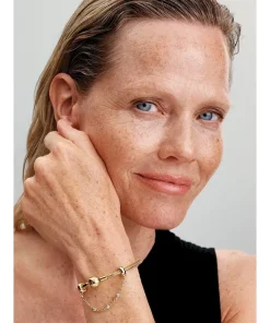 Keep your treasures safe with this 14k gold-plated safety chain. Each bail has threads inside to secure the charms on your Pandora Moments bracelet. It features three clear bezel-set stones on the chain to bring a touch of sparkle to your style. Perfect piece to add to your collection or to gift to the charm lover in your life.