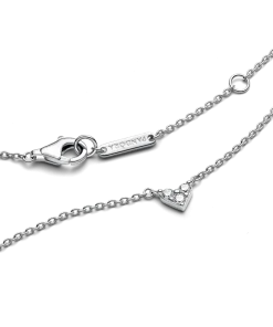 Wear a symbol of love in the Triple Stone Heart Collier Necklace. The delicate, sparkling stones of this sterling silver necklace take their inspiration from everlasting love. The new Pandora Timeless design arranges three round brilliant-cut stones into a refined heart-shaped style. Whether you want to wear it alone for subtle sparkle or layer it with other styles, this heart necklace is sure to light up any room.