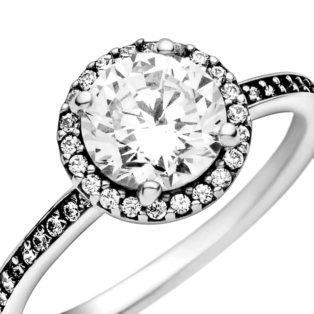 Timeless glamour meets dazzling elegance in this vintage-inspired ring set. Stun with sophistication with the Round Sparkle Halo Ring featuring a large brilliant-cut cubic zirconia surrounded by tiny shimmering stones. Couple it with the delicately textured Sparkle and Hearts Ring to add opulence to your favorite outfit.