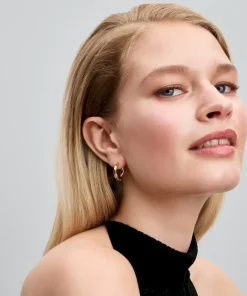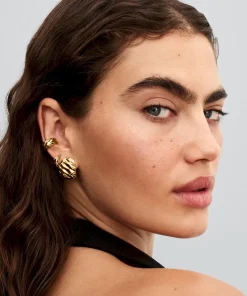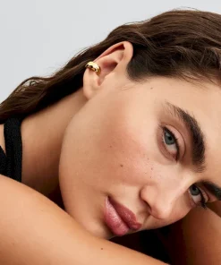 Give your stack a fresh twist with this earring set in 14k gold plating. Includes our Twisted Hoop Earrings, a pair of staple huggie earrings and a sculptural ear cuff for a golden stack.