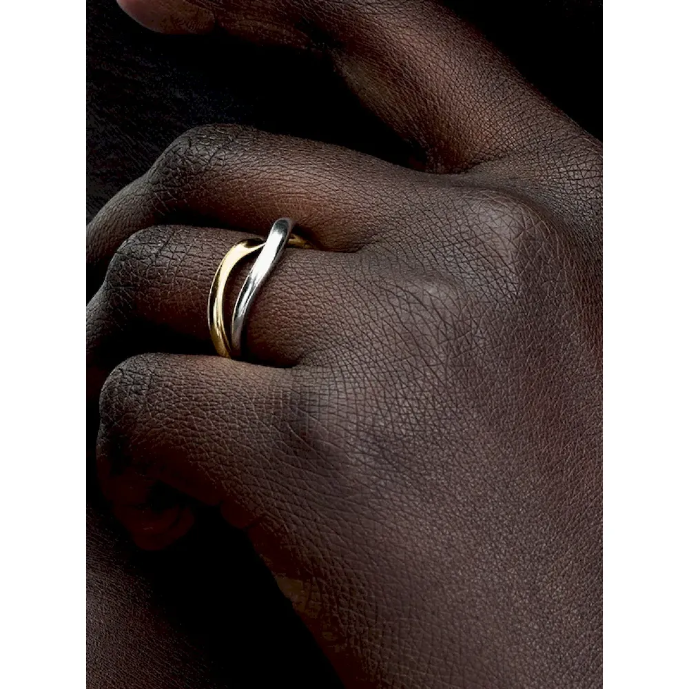 Two tones are better than one with the Two-tone Entwined Bands Ring. This ring features two slightly wavy rounded bands – one sterling silver and one 14k gold-plated – that overlap and intertwine with one another. The best part about this sleek, sculptural style is that you don’t have to choose your favorite metal because it features both, making it an extra versatile addition to your own collection or as a gift for a loved one.