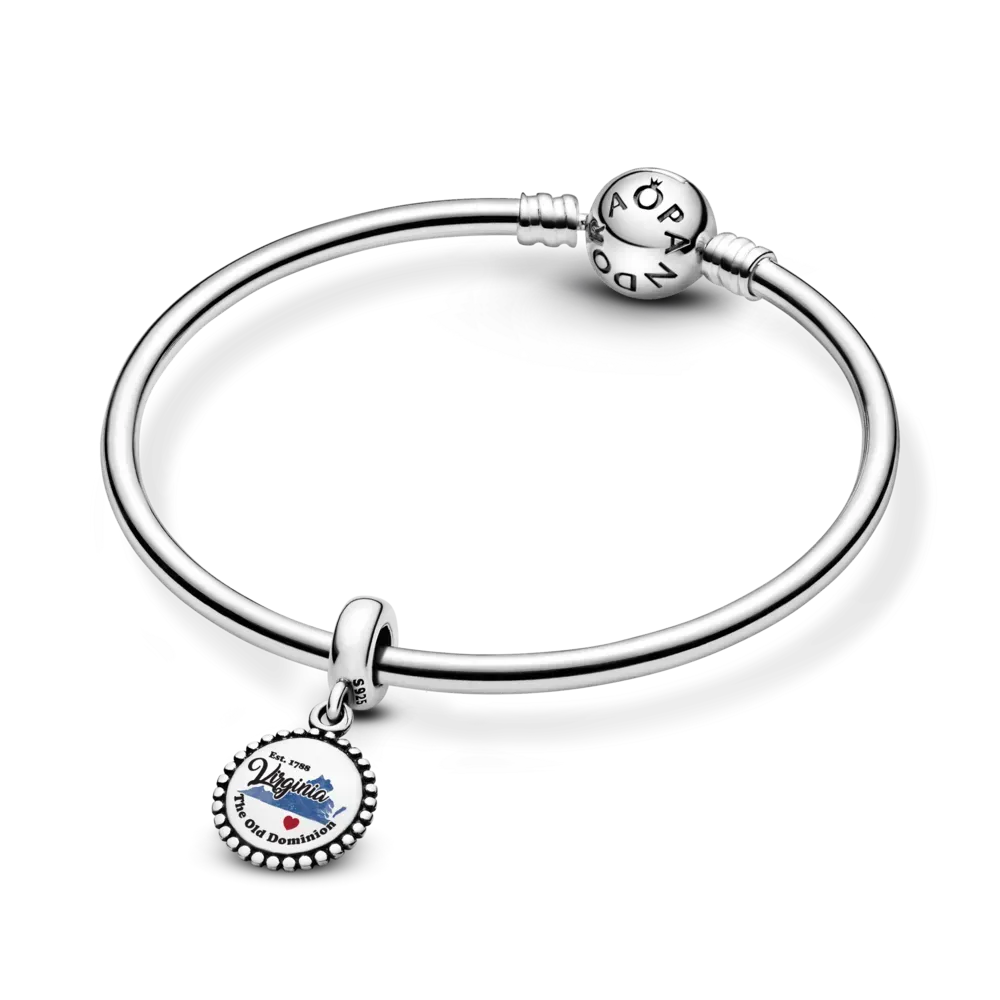 Virginia lovers, this charm is made for you. Crafted in sterling silver, the dangle design features a state-shaped silhouette in glossy blue enamel, a small red heart underneath, and “Virginia” beautifully scripted across—perfectly capturing the charm of The Old Dominion.