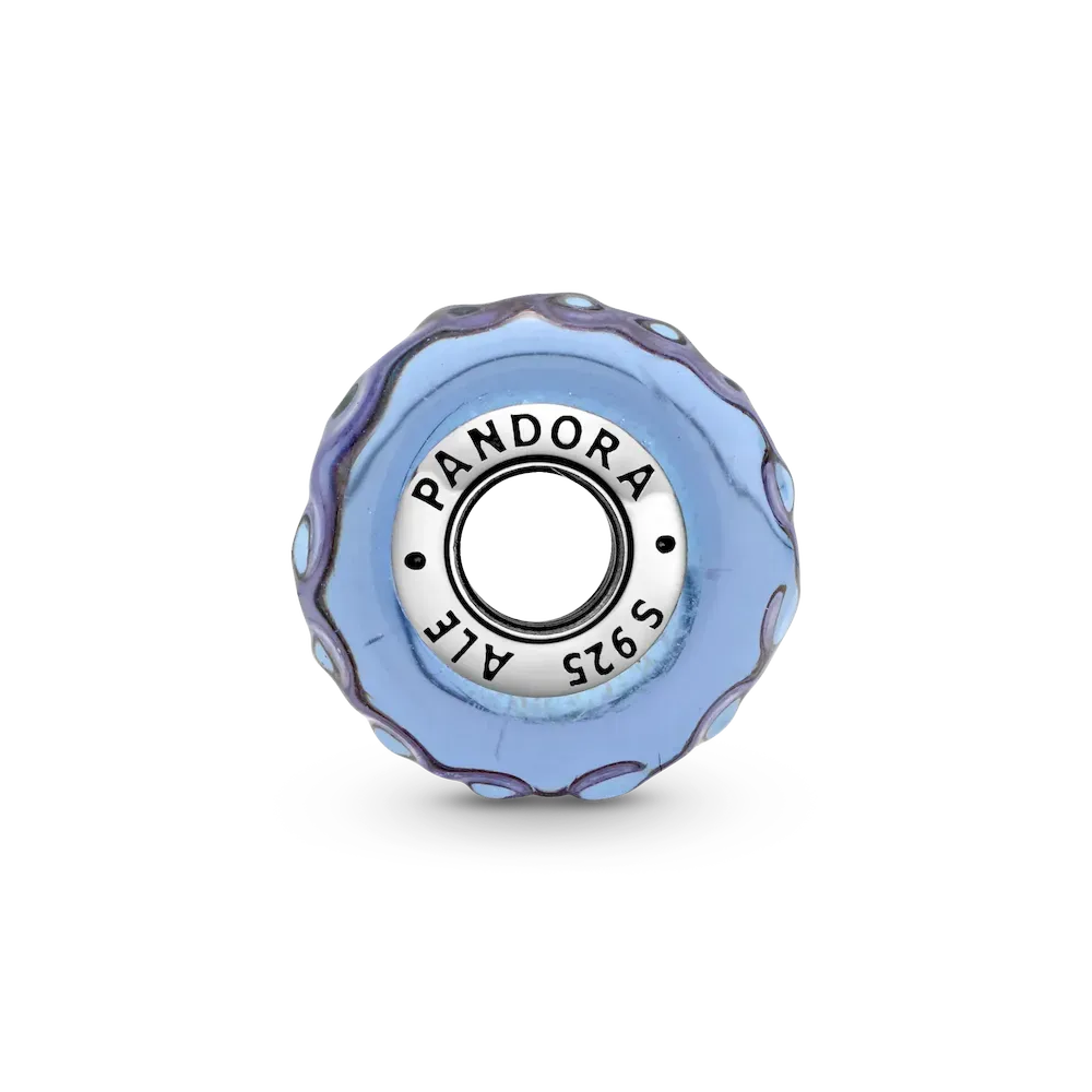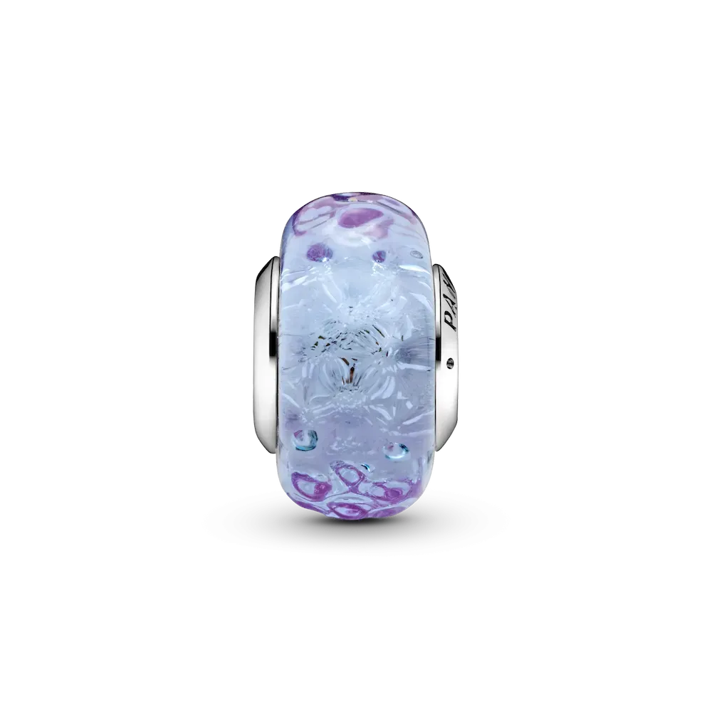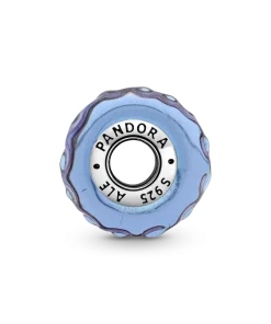 Colorful and sophisticated, the Wavy Lavender Murano Glass Charm can elevate any outfit. Transform your look from ordinary to extraordinary with this iridescent and lavender Murano glass charm filled with glitter and topped with a wavy glass surface. A touch smaller than our traditional Murano charms, this charm is the perfect complement to your style. Every Murano glass charm is hand finished and features a sterling silver core engraved with the Pandora logo.