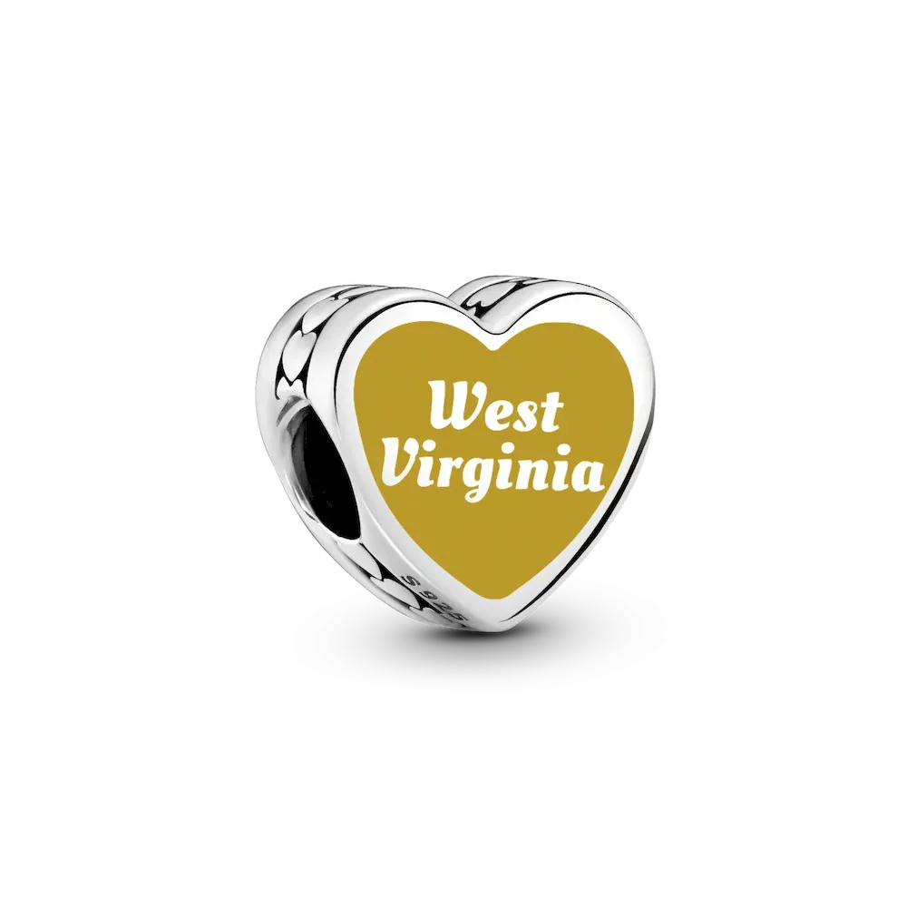 Country roads meet classic style in this West Virginia sterling silver heart charm.