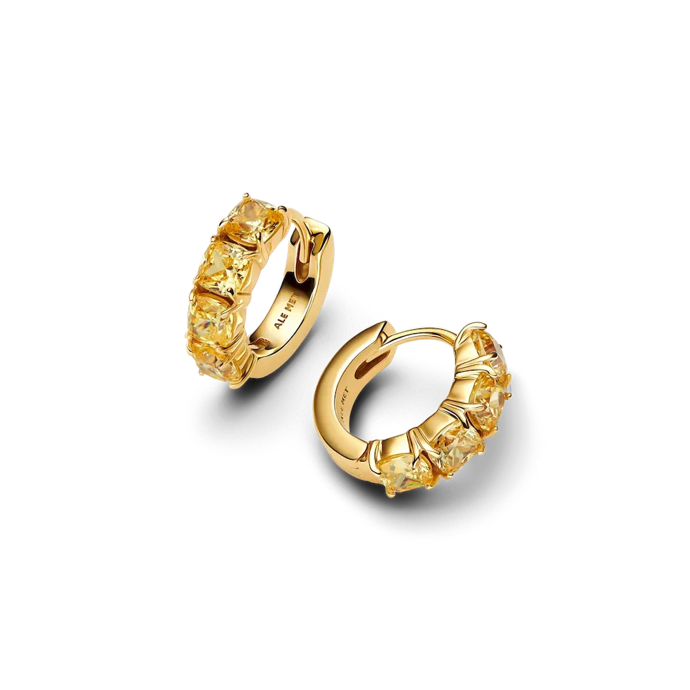 Add a ray of sunshine to your look with these charming hoop earrings, featuring a row of vibrant yellow cubic zirconia stones.