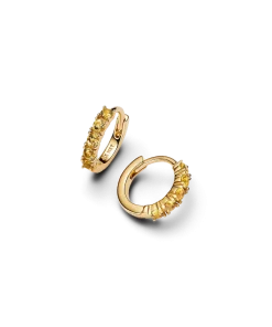Add a pop of color to your look with these delicate huggie earrings, showcasing a row of vibrant yellow crystals.